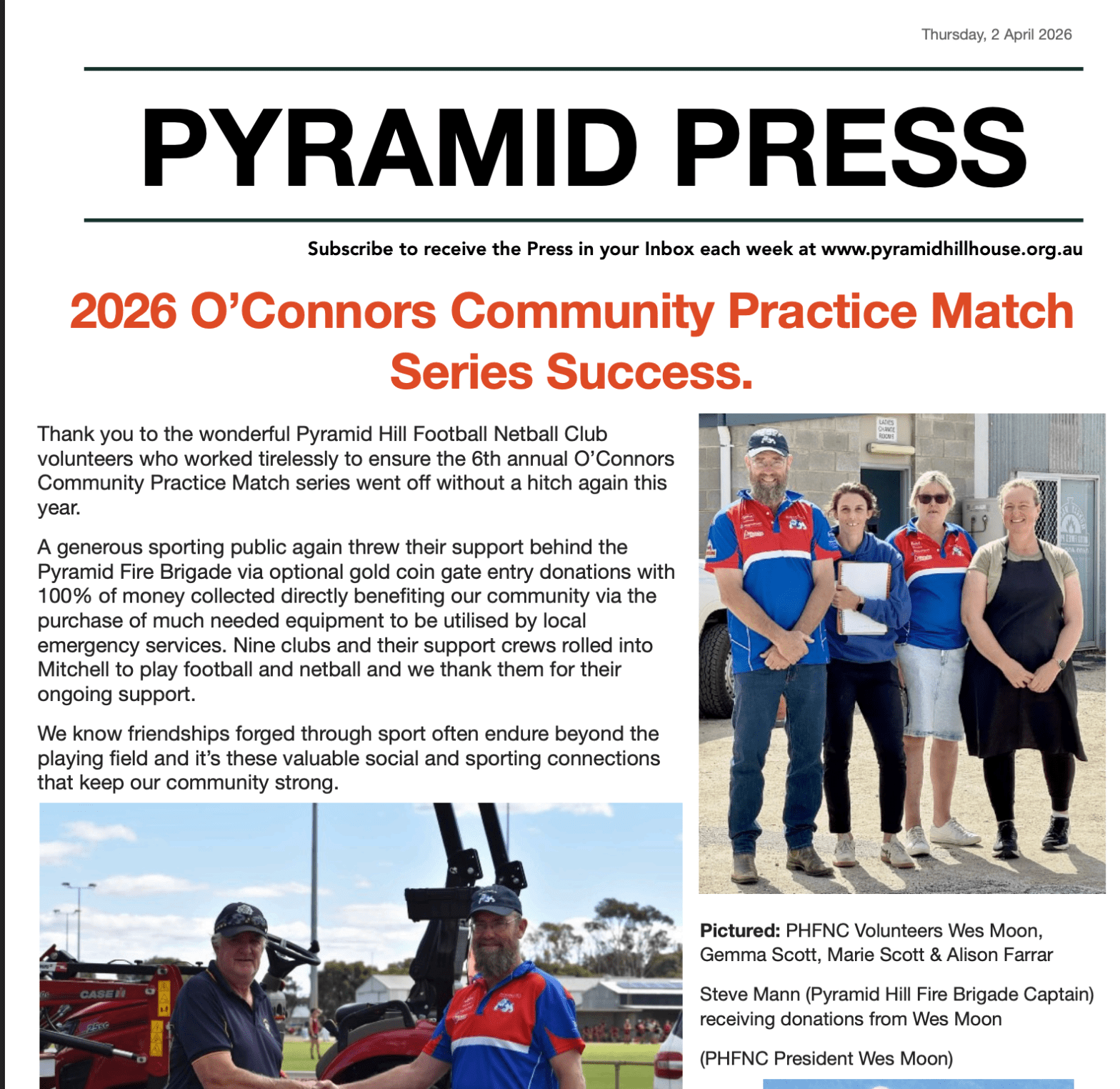Pyramid Press Posted bypyramidhillpress1st Apr 20261st Apr 2026Posted inPyramid Press Hi Neighbours. Here’s your Press for the week Pyramid Press 2 April 2026Download Share this: Share on X (Opens in new window) X Share on Facebook (Opens in new window) Facebook Like Loading... Related